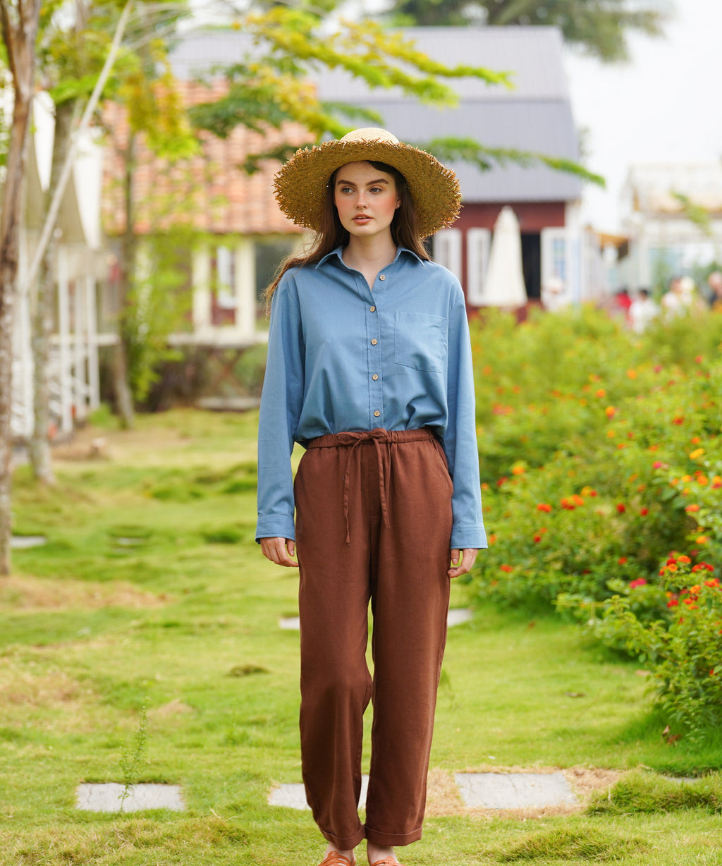 Linen Shirt - Long Sleeves Loose Fit Top | Navy