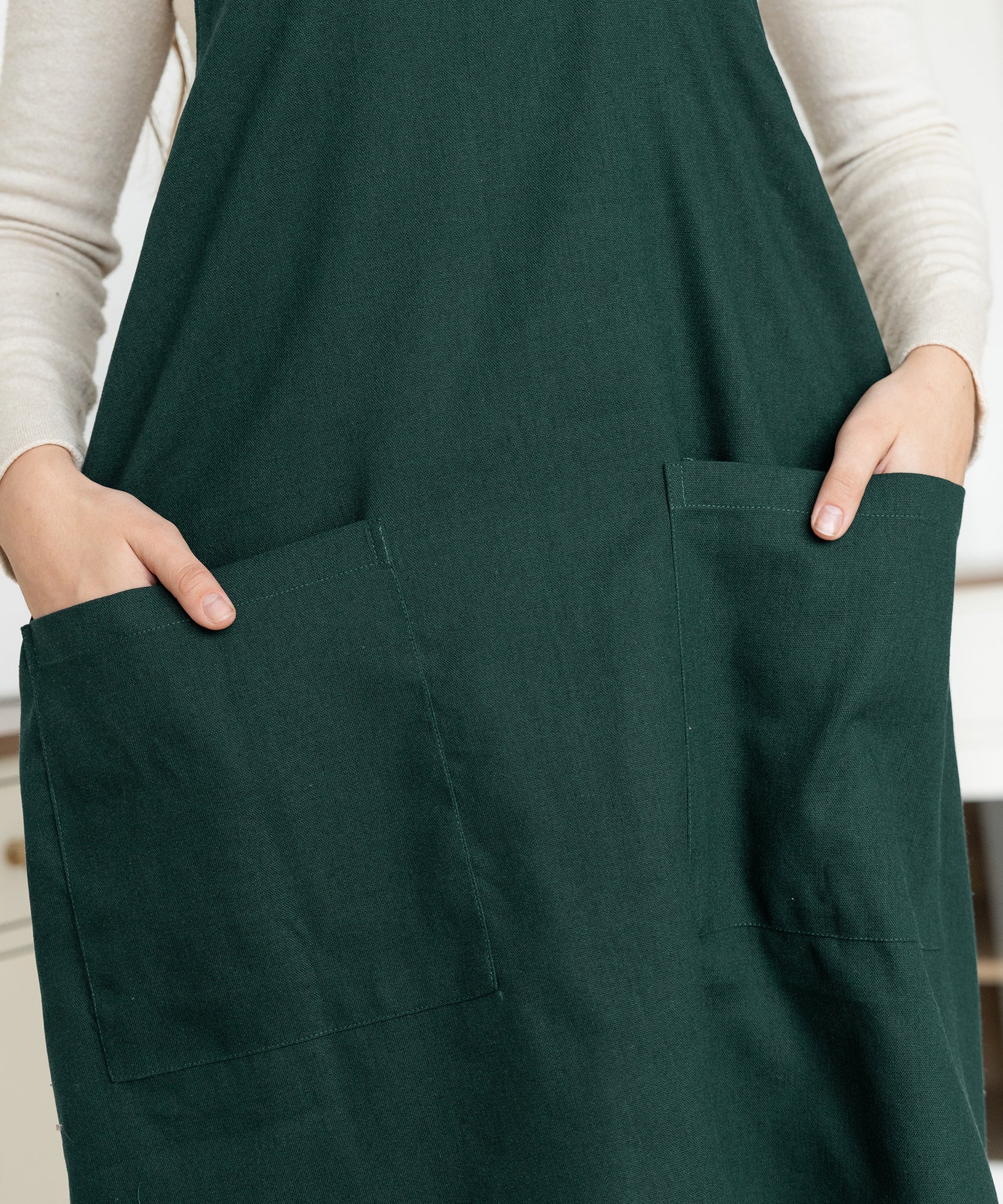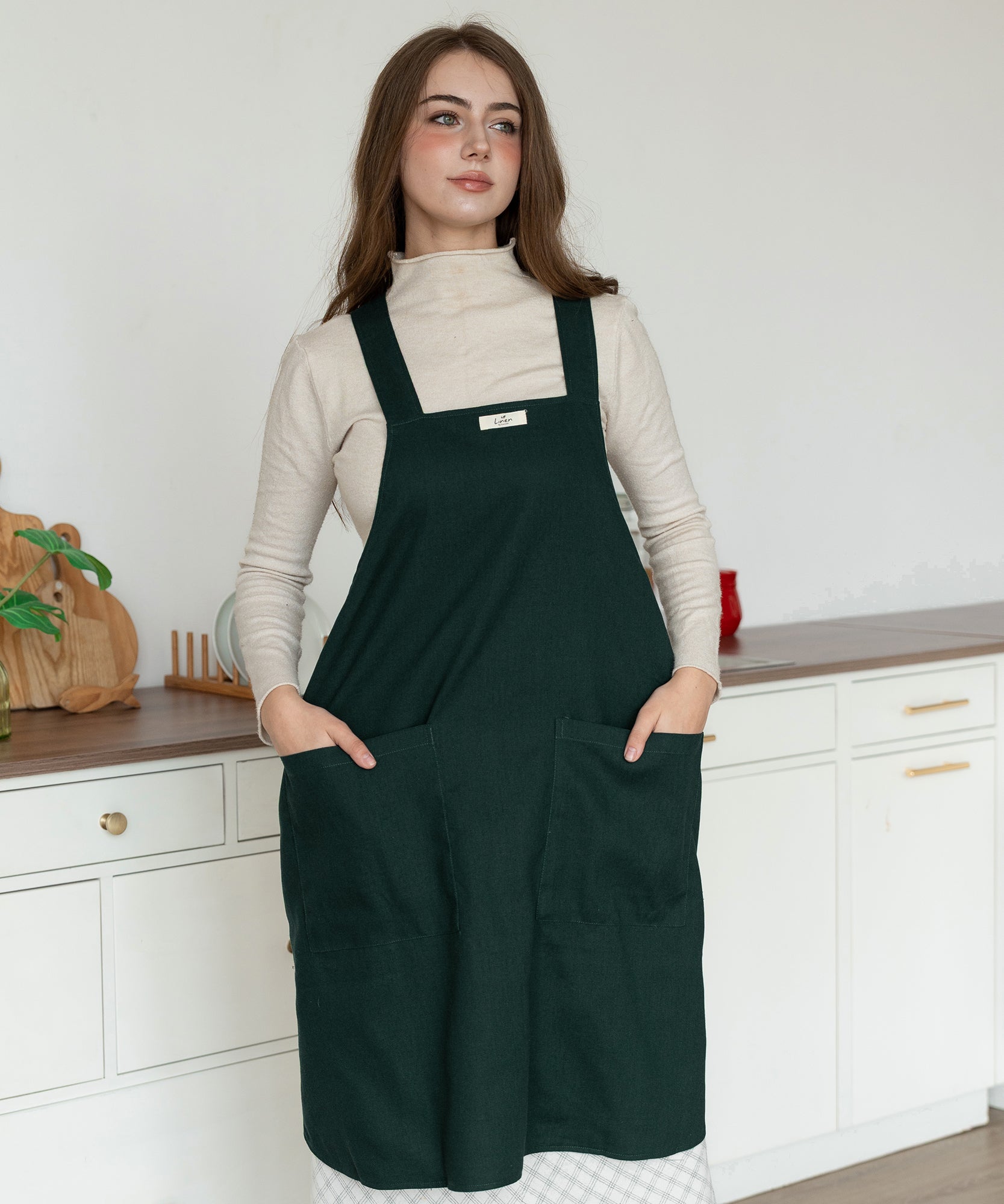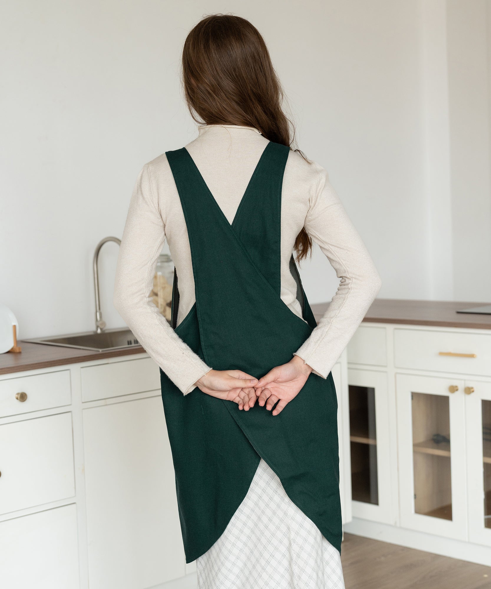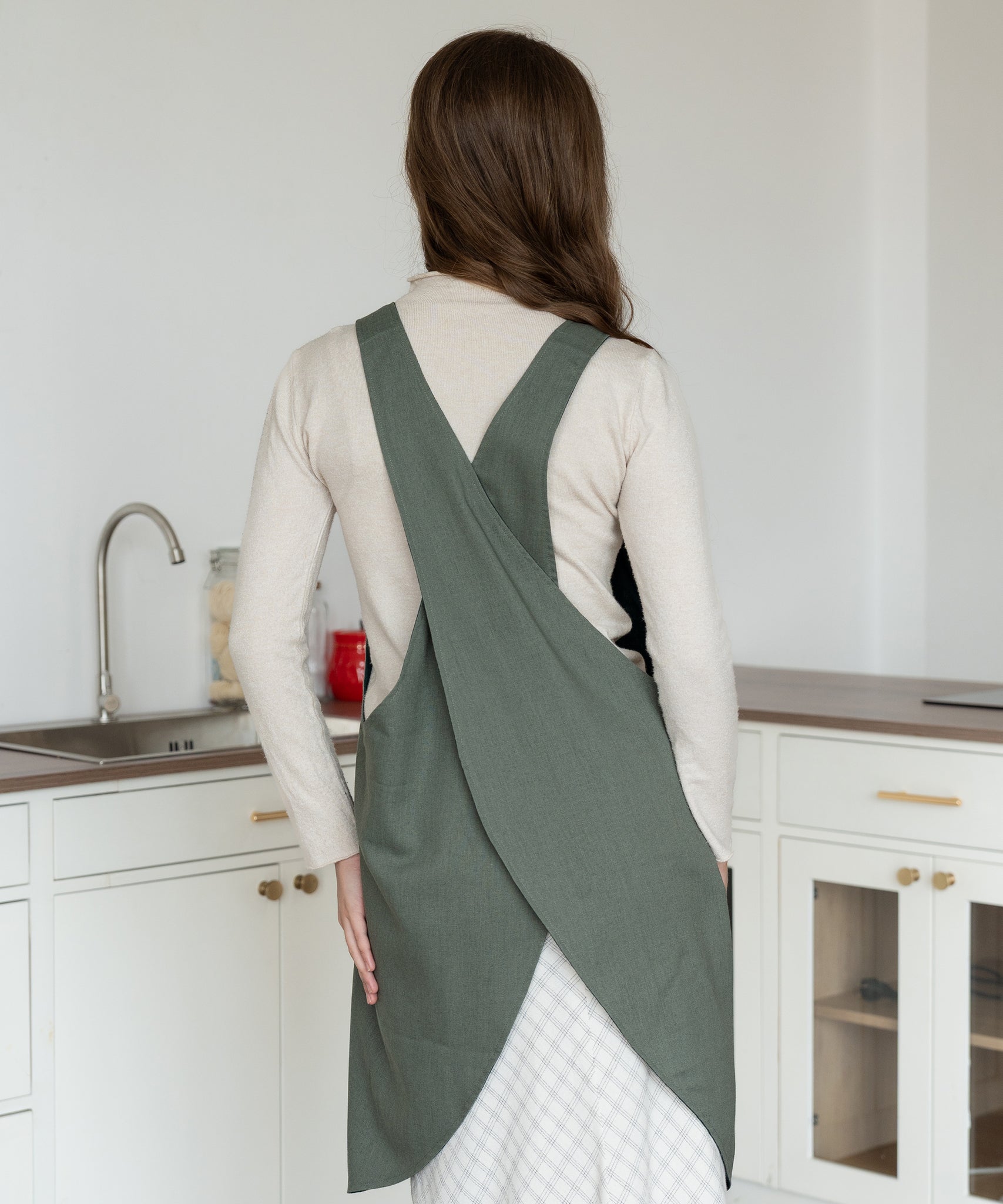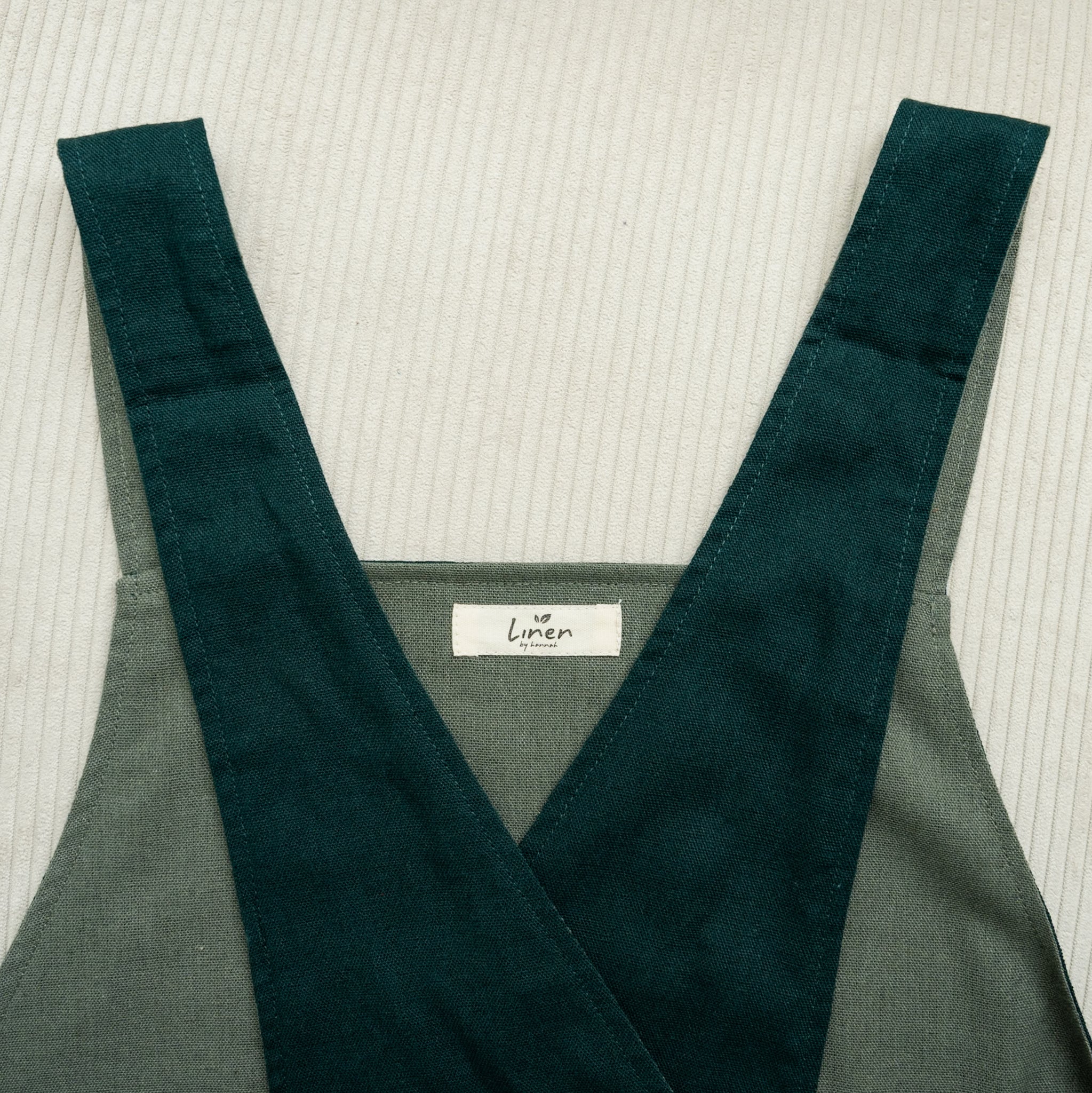 Discover the perfect balance of style and practicality with this reversible linen apron – designed with two layers of fabric so you can wear it on both sides. Each side features a charming color combination, giving you the flexibility to switch up your look anytime.